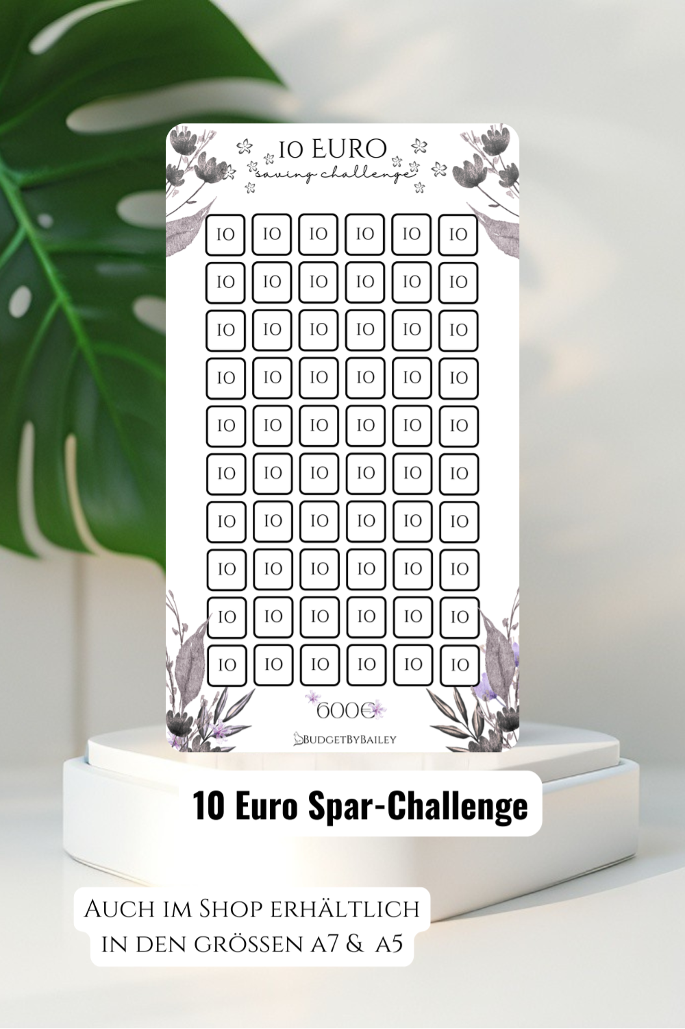Spare regelmäßig 10 Euro und arbeite dich Schritt für Schritt durch die Challenge – am Ende erreichst du dein Ziel von 600 Euro Ersparnis.