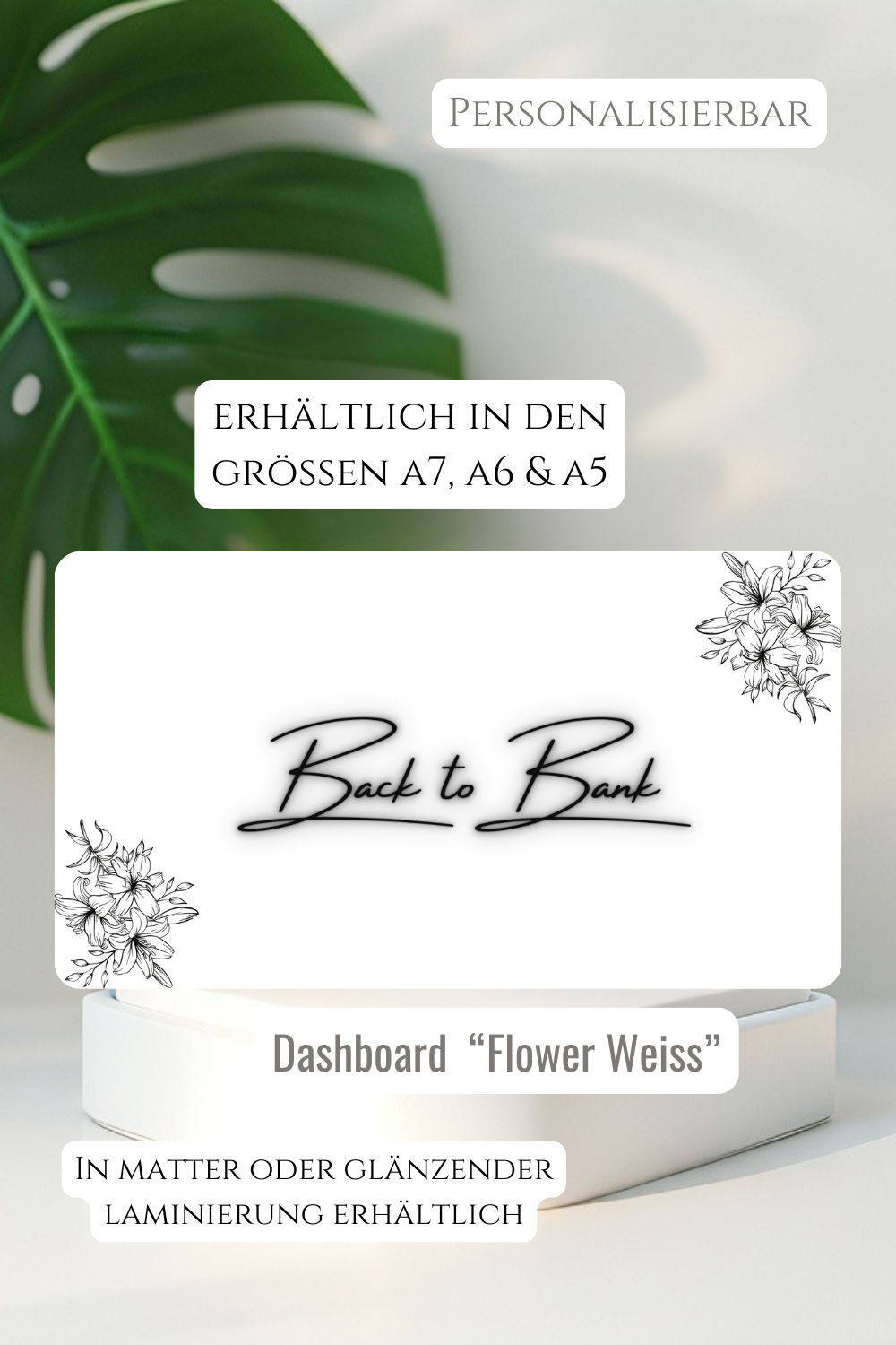 Die Dashboards sind in verschiedenen Designs erhältlich und passen in Binder der Größen A7, A6 und A5.